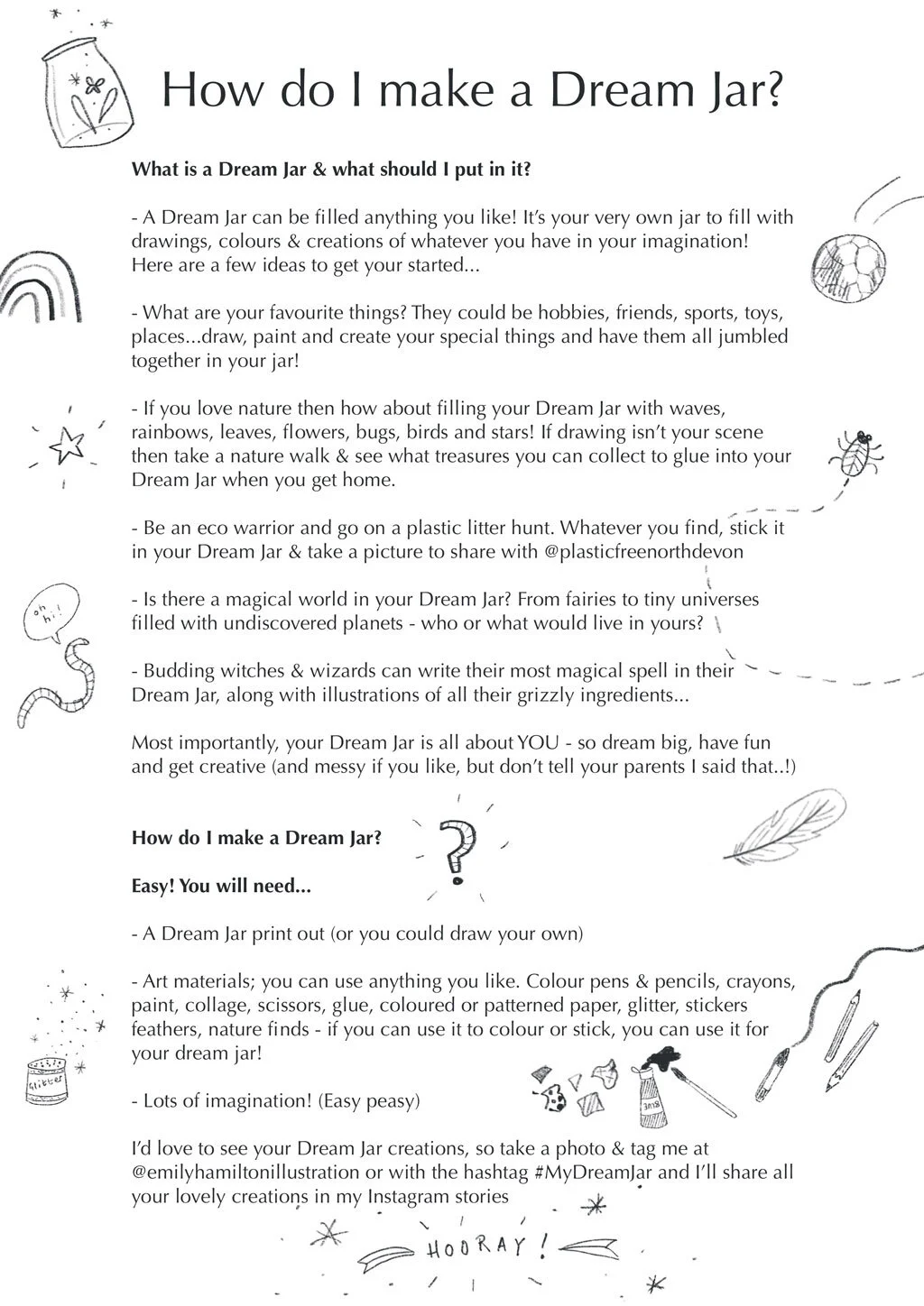 Draw your own dream jar or download and print out the one below to fill with your imagination.